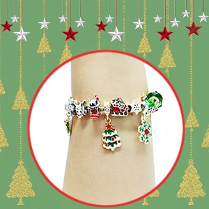 - Wszystkie urocze charmsy mają zachwycający motyw świąteczny, w tym Świętego Mikołaja, choinkę, czapkę Mikołaja, pudełko na prezenty, pończochę, płatek śniegu, wieniec, laskę cukrową i wiele innych.