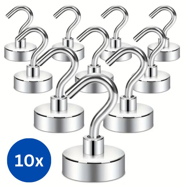 Nasz zestaw 10 haczyków magnetycznych może utrzymać do ok. 10 kg każdy, dzięki czemu idealnie nadają się do organizowania narzędzi garażowych, przyborów kuchennych, kluczy, ręczników i nie tylko.