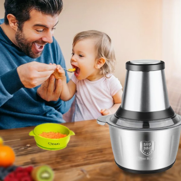Dzięki dwóm ustawieniom prędkości można szybko siekać warzywa lub rozdrabniać suche składniki. Takie jak nasiona, orzechy laskowe i migdały na pożywne dodatki i mieszanki. Zapewnia trwałość i łatwość czyszczenia.