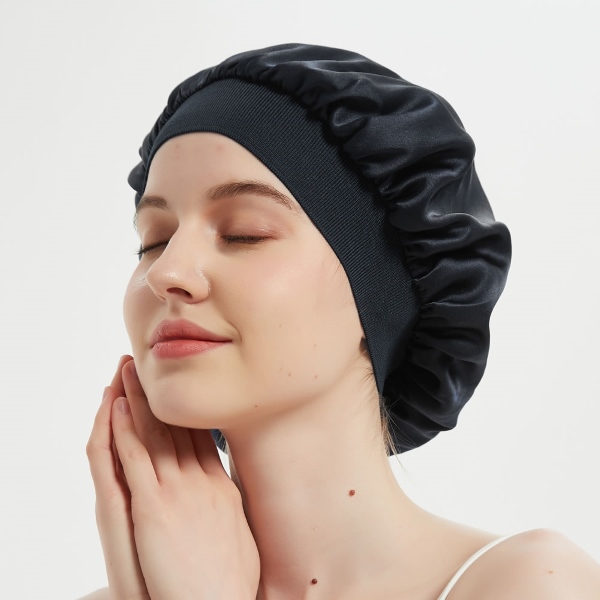Nasza czapka ma szeroką krawędź wykonaną z najwyższej jakości jedwabistej satyny, zapewniając najwyższy komfort bez poświęcania stylu. Szeroki pasek został zaprojektowany tak, aby rozciągał się w celu spersonalizowanego dopasowania, zapewniając luksusową i bezpieczną ochronę włosów.